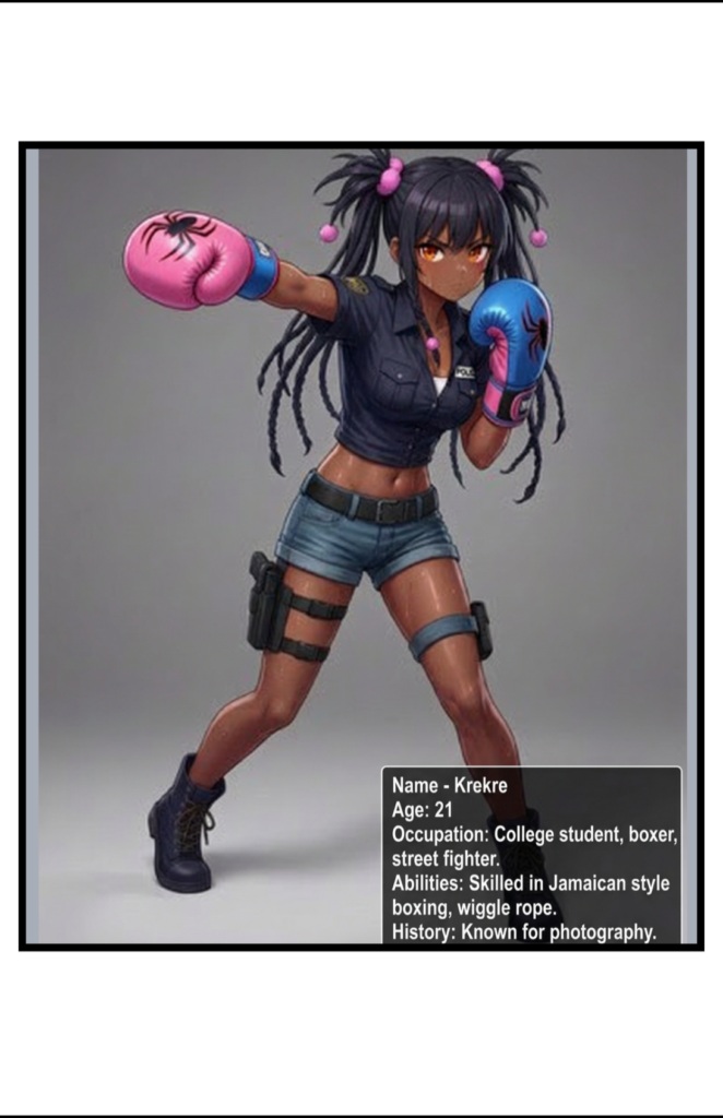 Krekre represents a new generation of fighters who blend awareness with agility. Whether navigating the streets, the ring, or everyday life, he relies on movement and perception to survive and grow. His dual identity as both observer and combatant positions him as a character whose perspective may shape how future conflicts are seen and remembered.